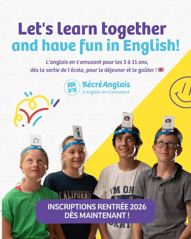 Apprendre une langue étrangère demande du temps, c'est pourquoi RécréAnglais commence dès l'âge de 3 ans et jusqu'à 11 ans, dans le but de garantir l'apprentissage du vocabulaire et propose des jeux adaptés à l'âge de l'enfant. Lorsque vos enfants viennent à RécréAnglais, ils gagnent en vocabulaire et ils apprennent les expressions d'usage des pays anglophones.