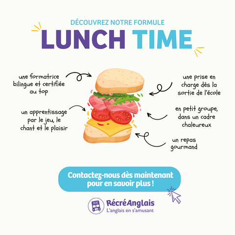 Dès la sortie de l'école, pour la pause déjeuner, pour le goûter, votre Formatrice RécréAnglais récupère vos enfants par petit groupe et se charge de tout, tout en anglais: récupérer vos enfants à la sortie de l'école, gestion du transport, des repas, des cours et de toutes les activités!
